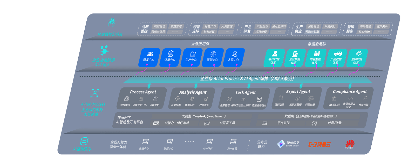 端到端的一站式AI工作空间深度融合了从企业战略规划到日常经营的全流程业务板块,,,定向解决车企内部领域多、、、部门多、、、链条长、、场景碎片化等难题,,,,支持车企快速构建以AI为核心的生产力写作体系,,,实现任务执行与AI能力的无缝集成与交互